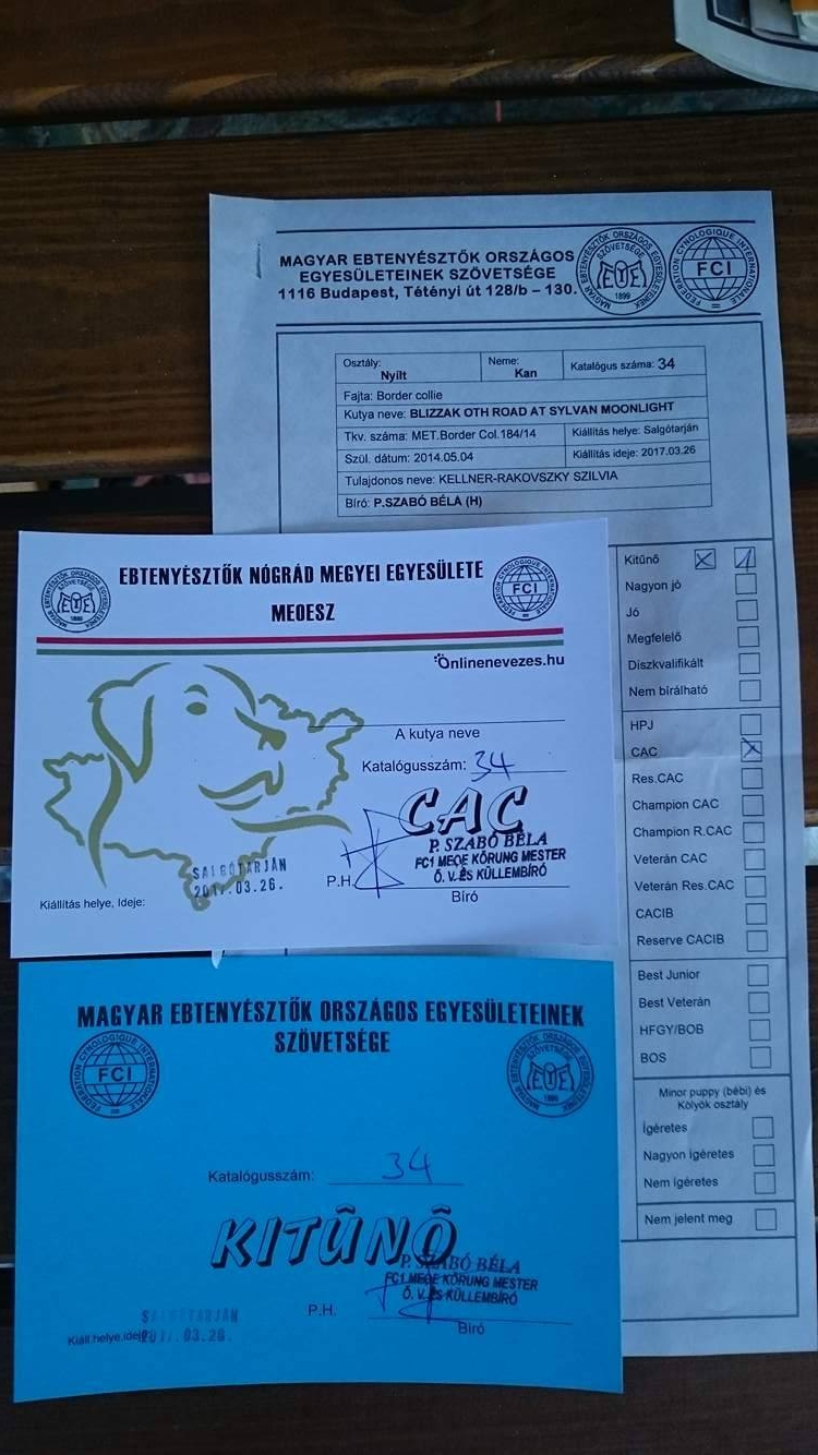 Szilva (Blizzak Oth Road at Sylvan Moonlight) a Salgótarján CAC kiállításon Kitűnő 1 és CAC címeket szerzett nyílt osztályban.