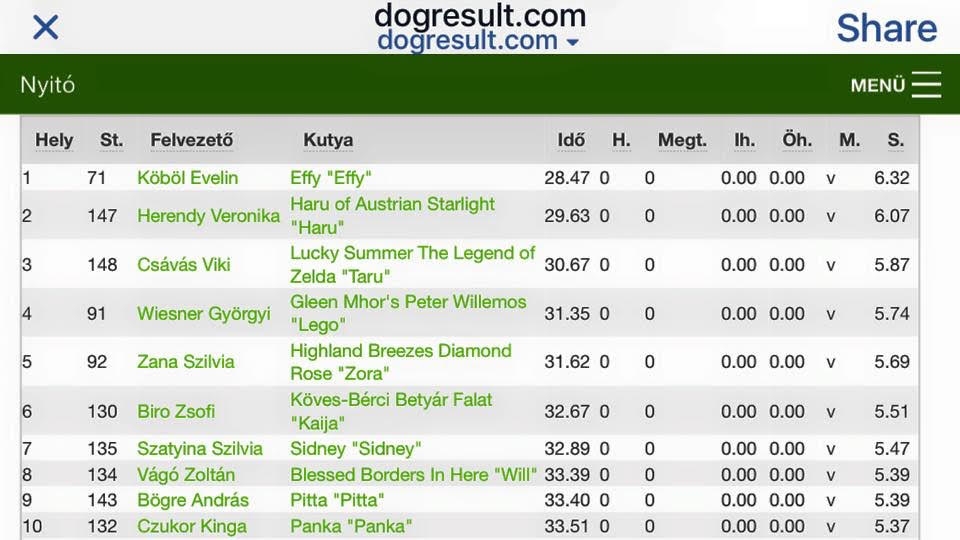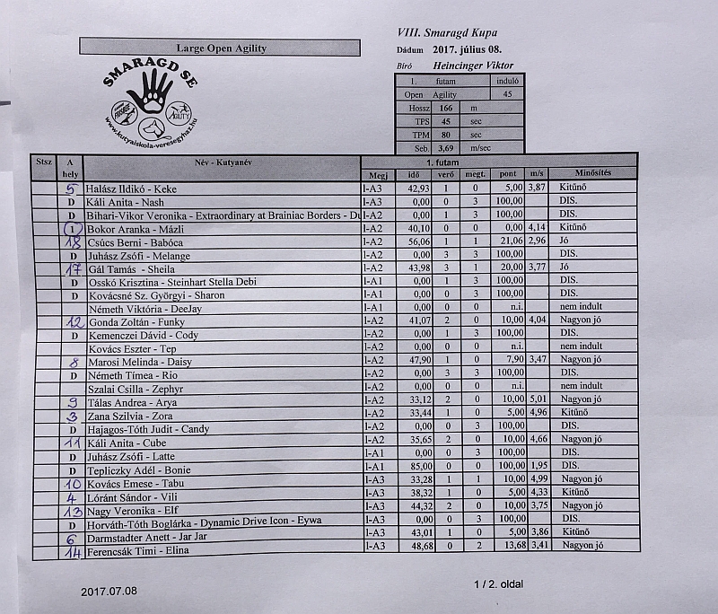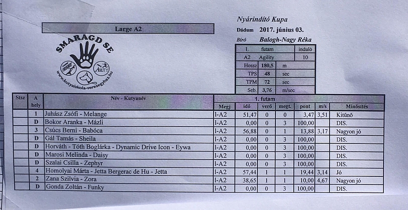Erdőkertesen, a VIII. Smaragd Agility Kupán Zorával open agility futamban a 3. helyen (45 induló közül) végeztünk, az A2 pedig DIS lett.