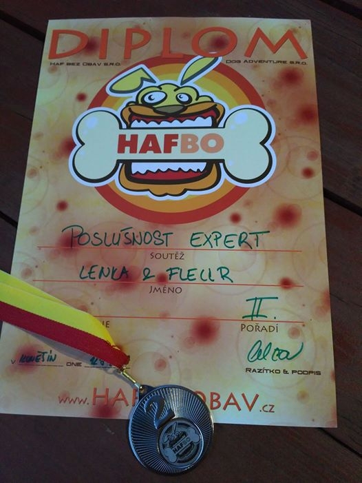 Grog csehországi lánya, Fleur (Open Heart z Černobílých) egy igazán sokoldalú leányzó, aki ezúttal egy újabb kutyás sportágban jeleskedett. 2. helyezett lett élete első frizbi versenyén. Wow!