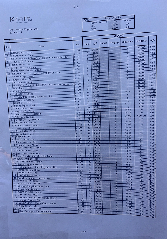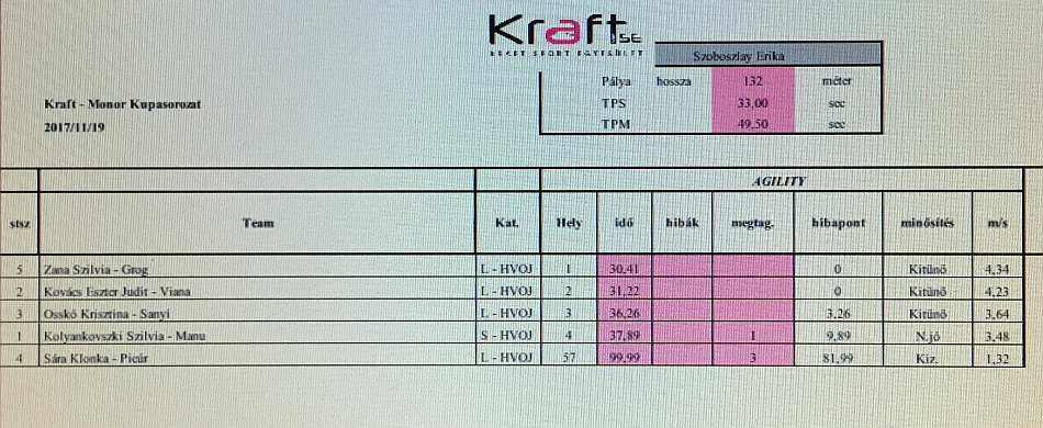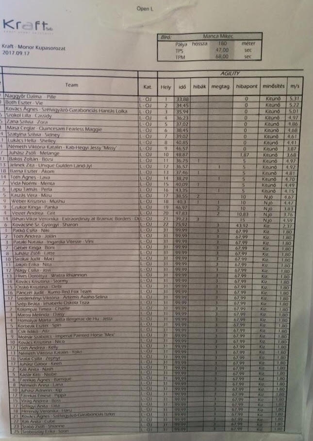 A Kraft-Monor Kupasorozat harmadik fordulóján voltam az ebekkel. Zorával open jumpingban hibátlan futammal 5. helyezettek lettünk 60 versenyző közül. A2-ben 2 hibával a 7. helyen végeztünk (17 indulóból).