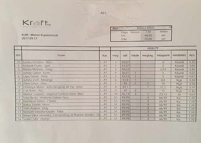 A Kraft-Monor Kupasorozat negyedik, egyben befejező fordulóján vettünk részt Zorával. A szintes jumping futamunk hibátlanul sikerült, ezzel 1. helyezettek lettünk (18-ból). Az A2 pedig DIS lett.
